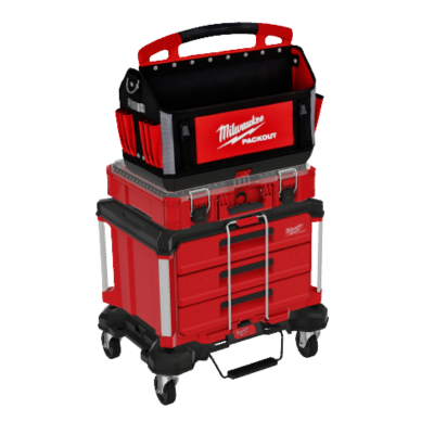 Milwaukeeが展開するPACKOUTは、工具・部材をまとめて運搬・収納できる連結式システムです。